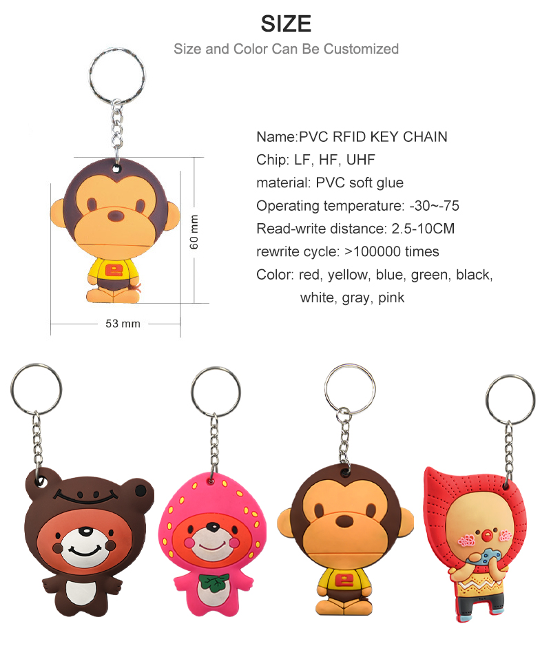 KC series PVC keychain is made of double-sided PVC material with the same pattern on both sides, the metal lanyard is easy to carry, waterproof, and the shape, craftsmanship and color can be customize